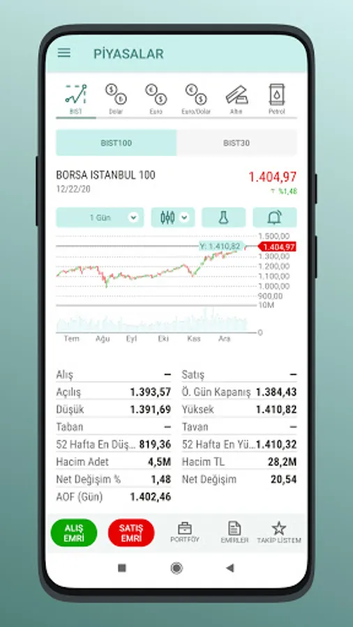 -Other than BIST equities and derivatives, you can reach to BIST Indices , currency pairs, gold prices, oil prices and top markets of World through our application