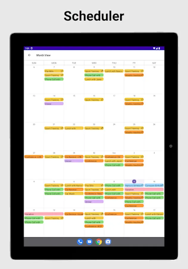 Our .NET MAUI Scheduler features multiple calendar views so you can deliver full-featured personal information management systems in the shortest possible time. Features include: