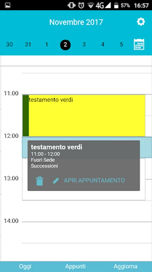 Application for mobile devices, agenda synchronized with the Arianna management system of Zucchetti Giuridico Software s.r.l.