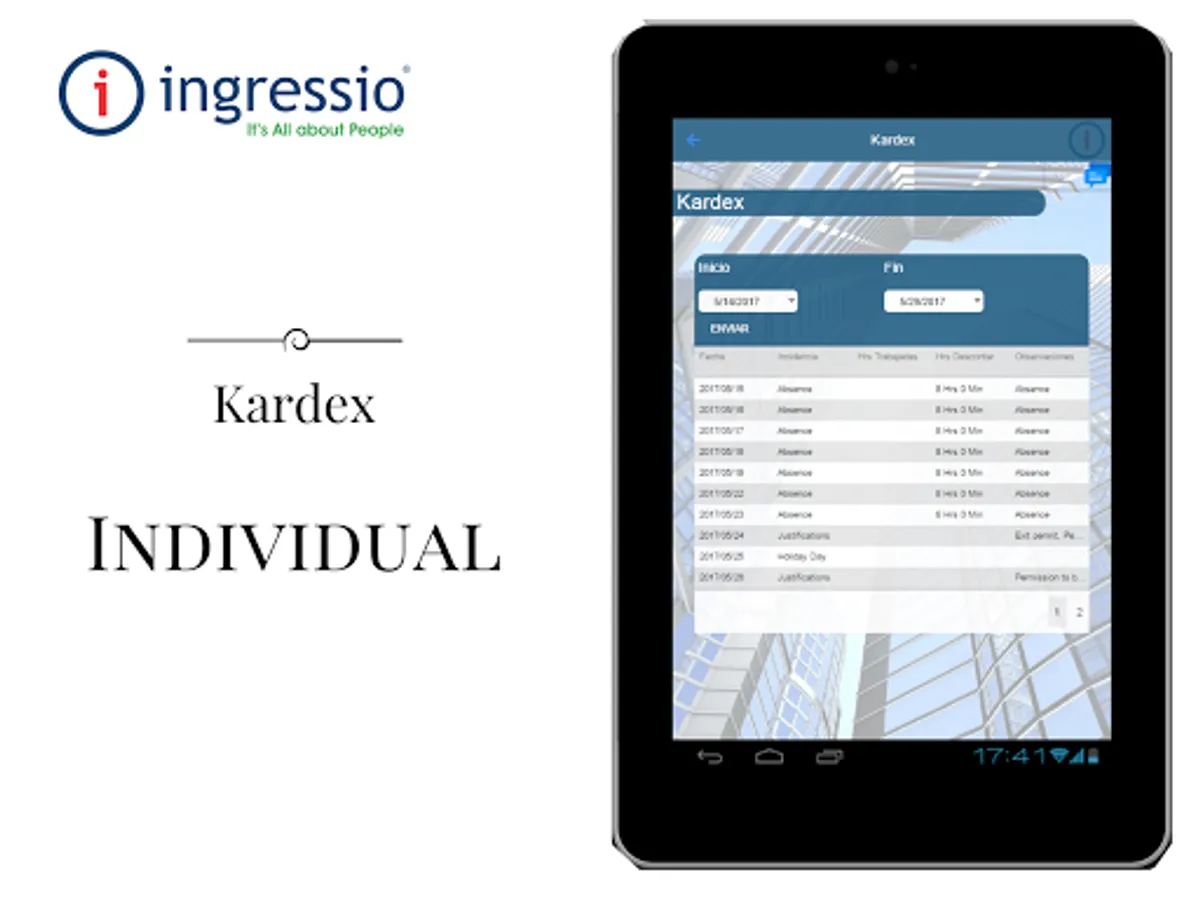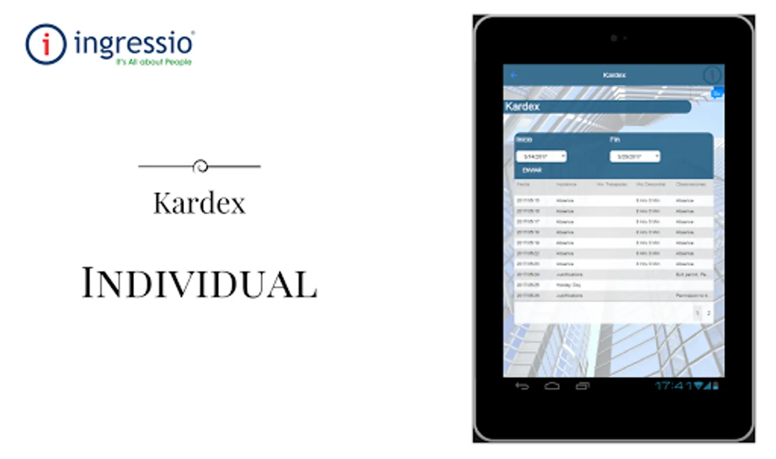 My Ingressio allows you to consult your own Kardex showing the impact of your workday.