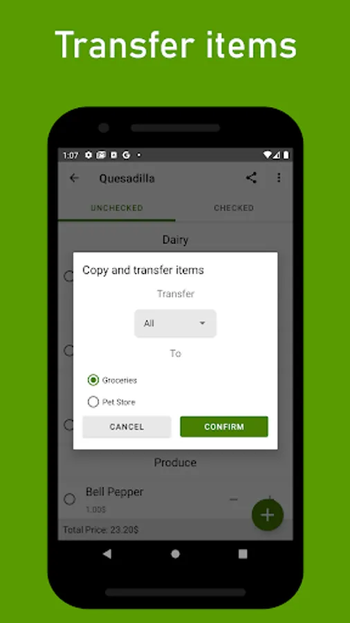 • Transfer items across lists