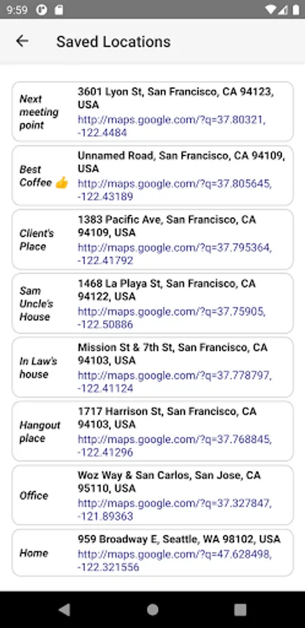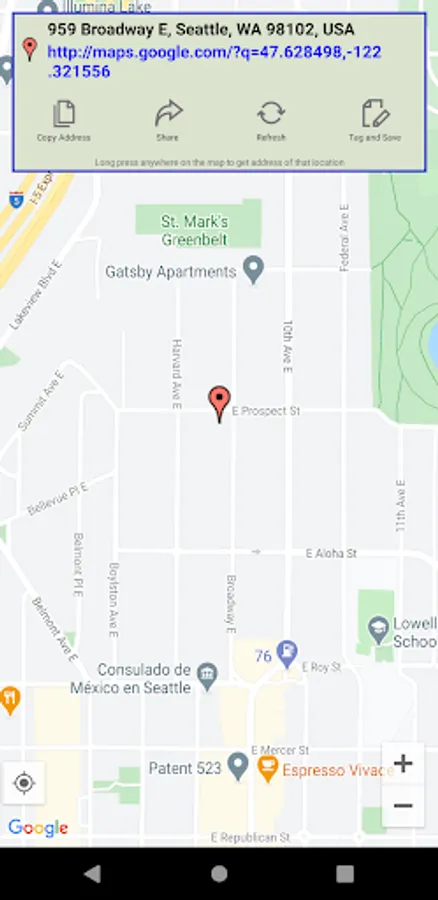 - link to Google Map with your current location's latitude and longitude which you can copy and use it.