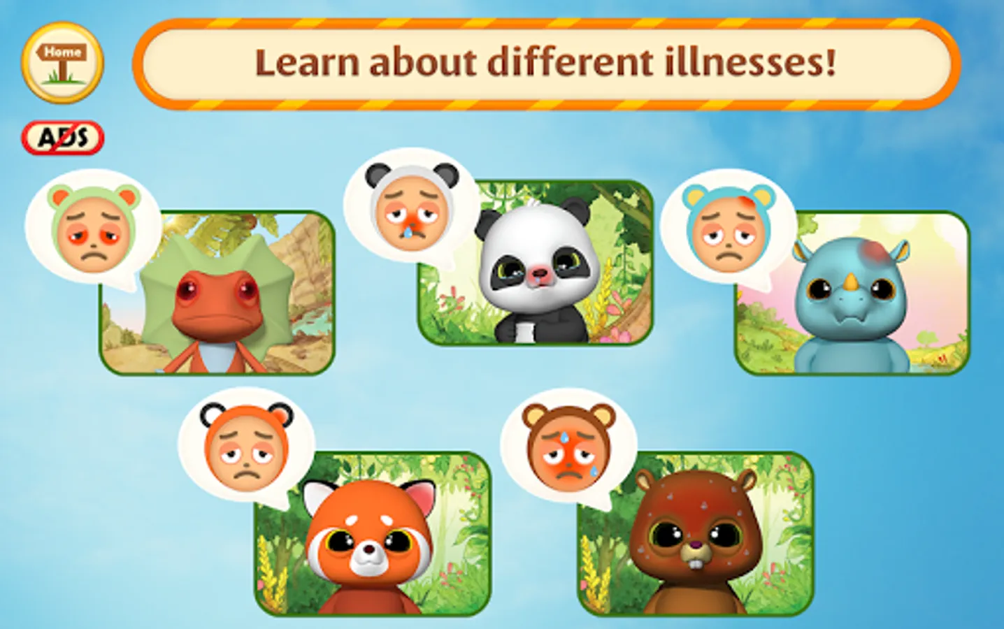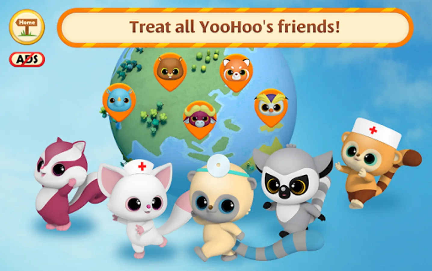 Hey! π Our neighbor animals got sick and we must help them!π We won't make it without you, and that's why you must embark on a journey with us! You will be able to treat the most exotic animals from all around the world! There are 10 characters waiting for you in these fun animal games for kids, and they keep on getting different illnesses; there will also be 5 places where you can go together with YooHoo and his friends! ππ
