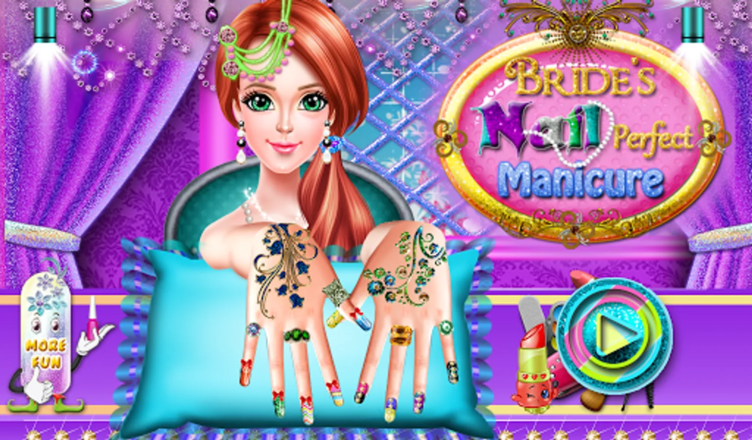 Hey, if you're here means you are looking for a very fun game and certainly today you're a lucky kid. Here you will be able to become a friend of a bride, you'll be able to work in a beauty salon and more than that you can learn many beauty tricks. If you are a young woman who is always attentive to how she is looking you will be happy to know that here you'll be able to help the young bride to look perfect. Through this perfect nail salon game you can participate in a dream wedding, you may even be bridesmaid to our beautiful friend. She wants to have a perfect manicure and have great confidence in you that you will be able to help her. If you want that in future to own a beauty salon today you'll be able to experience through this game for girls. Our salon is very nice and very well equipped, here you'll be able to use the best cosmetic products.