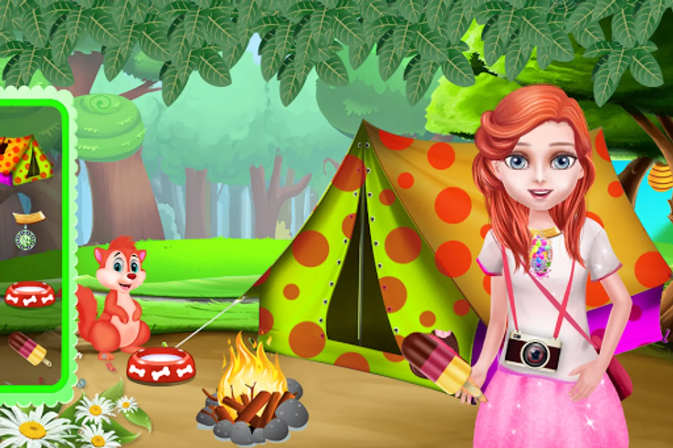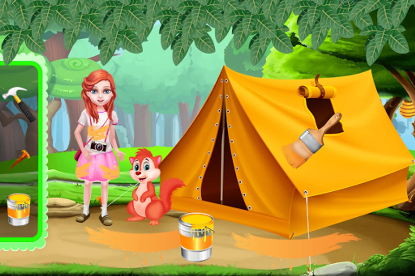 Hello, you will go on vacation. You will love to know that you will go on a trip to the mountains, you'll be able to sleep in a tent, you'll be able to do fire and even prepare the most delicious dishes. You could go to camp together with your friends, you'll be able to play with them and in the evening you'll be enjoying stars. In this summer trip you could become our friend and we're sure you'll have fun. We created this summer camp game for you, we want you to feel like you're really in the camp, we chose the most beautiful and most realistic colors of nature. Here you will have the opportunity to test many abilities, you'll be able to prove to everyone that you are a hard-working kid who can do cleaning. After you finish this you will be ready to help your mother to clean the house.