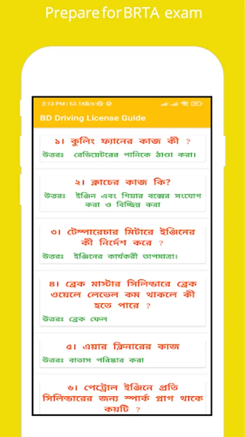 questions on the driving license exam driving license exam in Bangla with answers