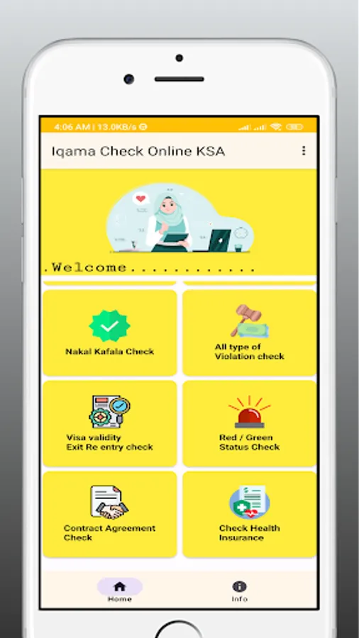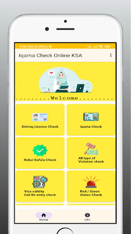 This app helps and guides you on how to quickly check your iqama and other documents' status online.