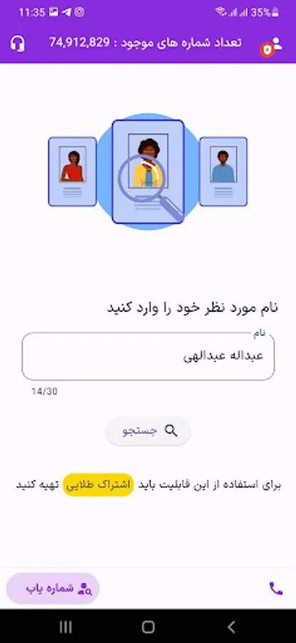 شماره مورد نظر را وارد کنید و نام آن را ئیدا کنید