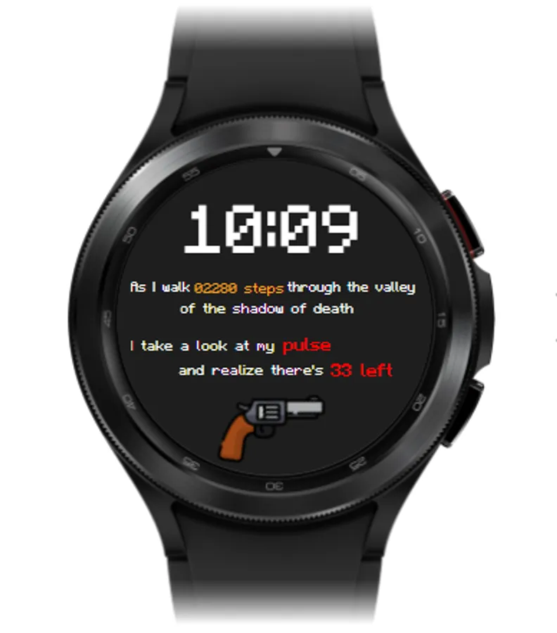 This is a text based watch face. Slick, cool, fun and inspiring!