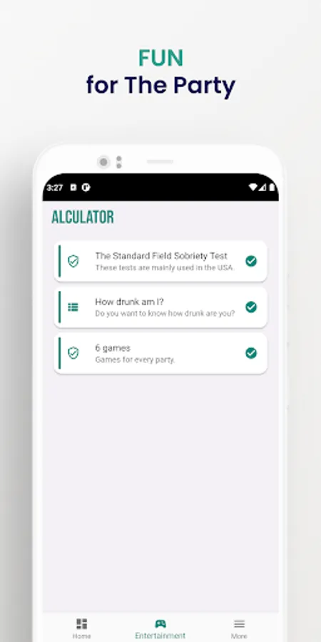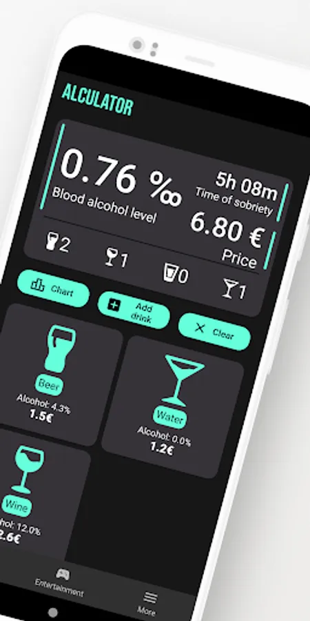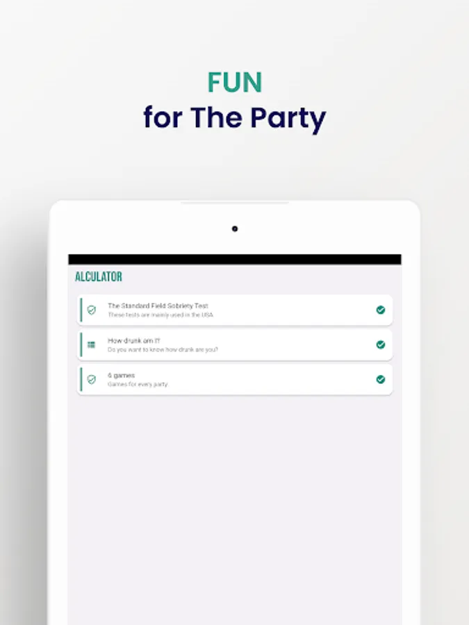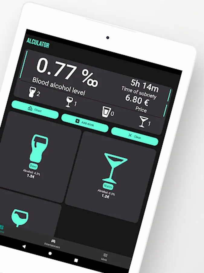 The application allows you to easily and simply calculate the approximate blood alcohol level. With Alculator you have the opportunity to monitor how your alcohol level decreases over time. The application also includes quizzes and games that you can use at every party.
