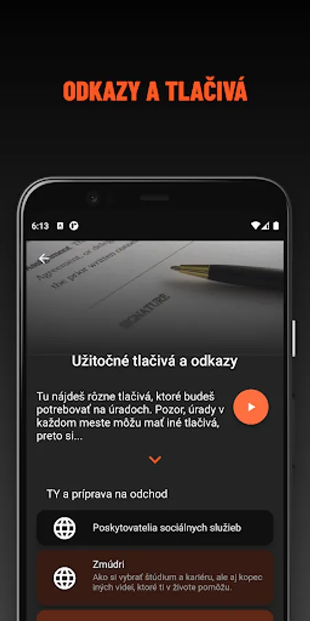 The application is a mobile guide on the way to successful independence after leaving the center for children and families.