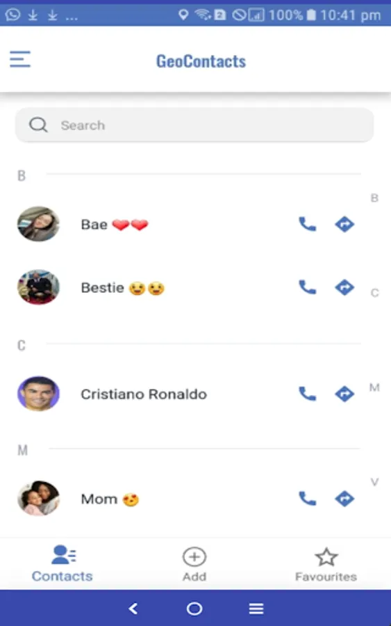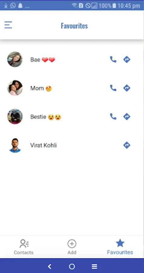 The app also provides a feature to search for contacts by name, making it easy to find the contact you're looking for. Additionally, the app allows users to group their favorite contacts , making it easy to organize and find the contacts they need most frequently.