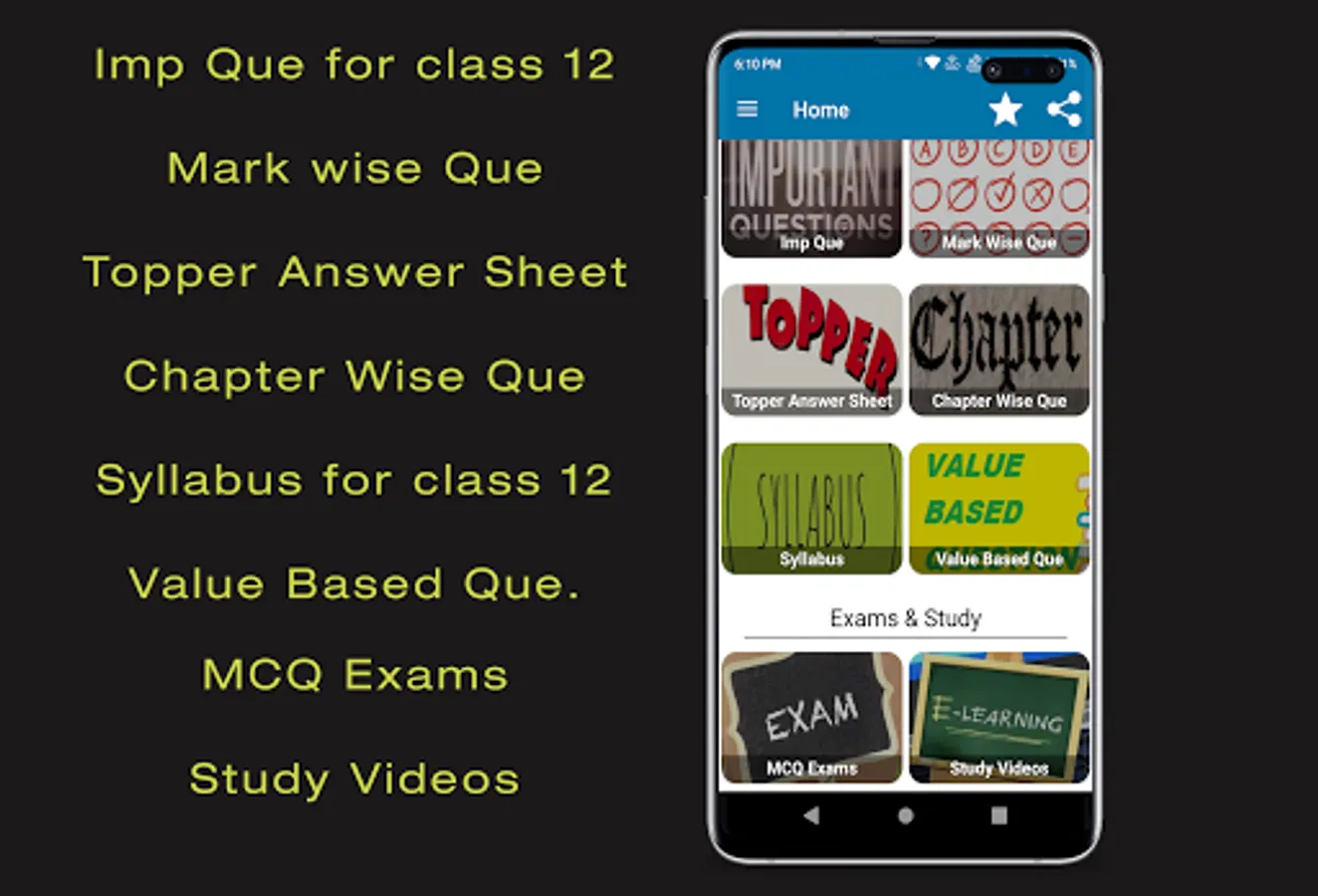 In this app you will find Class 12 Books Class 12 Notes and Syllabus Class 12 MCQ and Reference Books so it's good for Board Exam Preparation