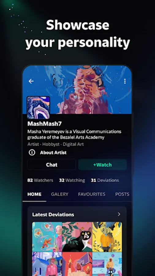 · Share your art – Showcase your art, get feedback, improve your skill, and build an audience.