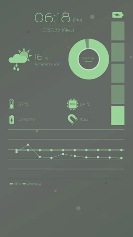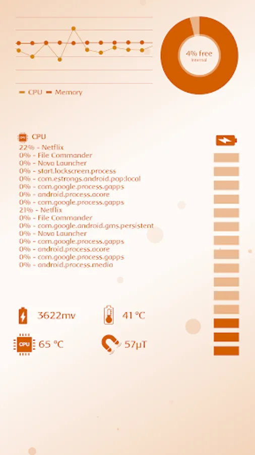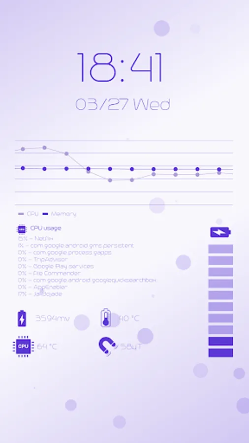 - Device information (cpu usage, memory usage, sensor data, battery charge information)