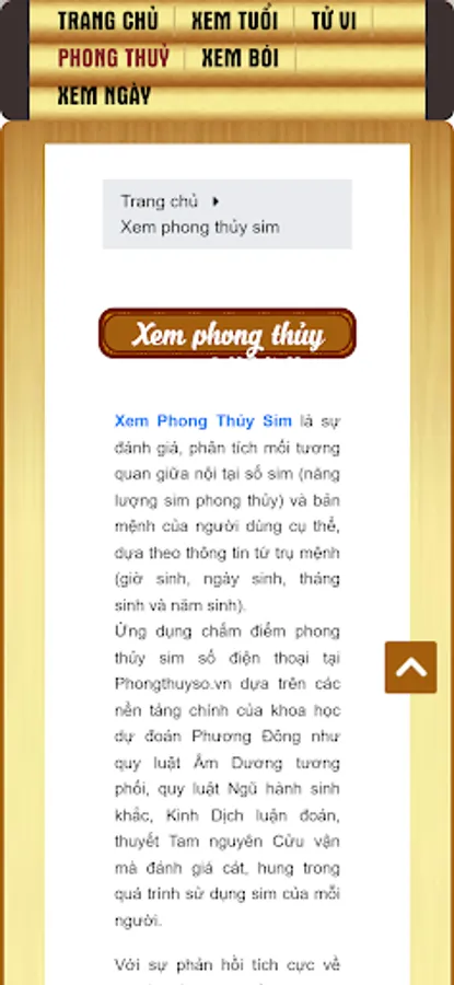 View Feng Shui Sim is an assessment and analysis of the relationship between the intrinsic number of sims (feng shui sim energy) and the destiny of a specific user, based on information about the four pillars of life (birth time, date of birth, month). birth and year of birth).