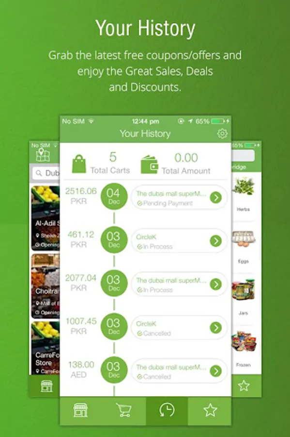 التطبيق يحفظ جميع الطلبات السابقة ، و يمكنك إعادة أى طلب شراء سابق بنقرة واحدة و كذلك يمكنك حفظ الطلبات المفضّلة.