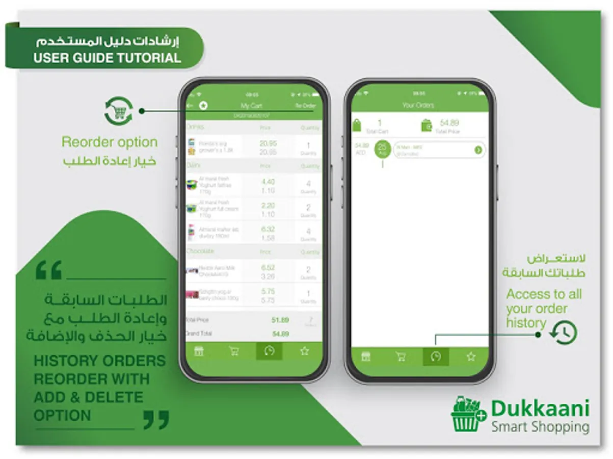 Dukkaani is a pan Arab smart shopping platform transforming all shopping stores to sell their products online and we started in UAE as beginning, also it is the only application that provides all grocery items supported by clear images.