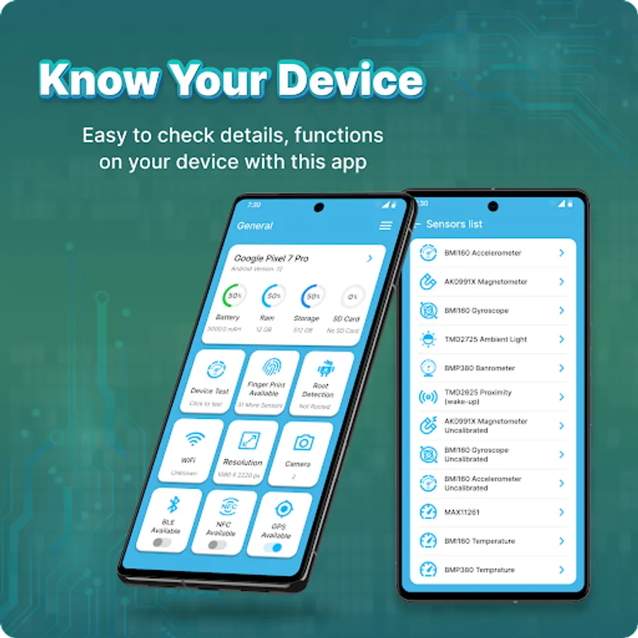 Hardware Info: CPU-Z is a simple application that gives you complete information related to your device with advanced user interfaces and widgets. For example, device Info/ phone Info includes CPU, RAM, OS, Sensors, Storage Battery, SIM, Bluetooth, Network, Installed Apps, System Apps, Display, Camera, Thermal, etc.