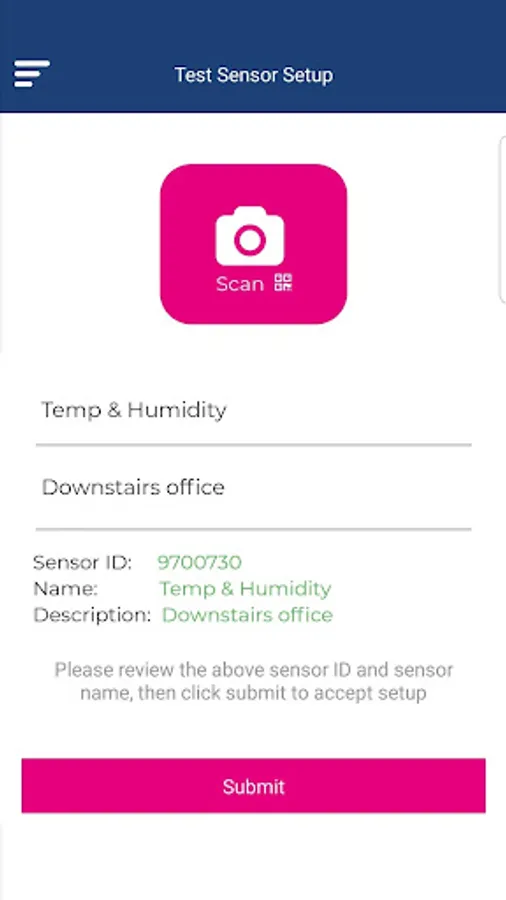 • Scan the sensor ID and give a location for each sensor you have purchased