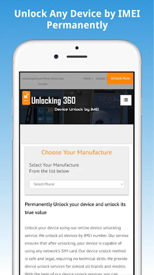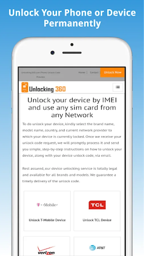 We provide device unlocking codes worldwide, all you have to do is enter the unlock code provided by Unlocking360.com and your device will be unlocked forever.