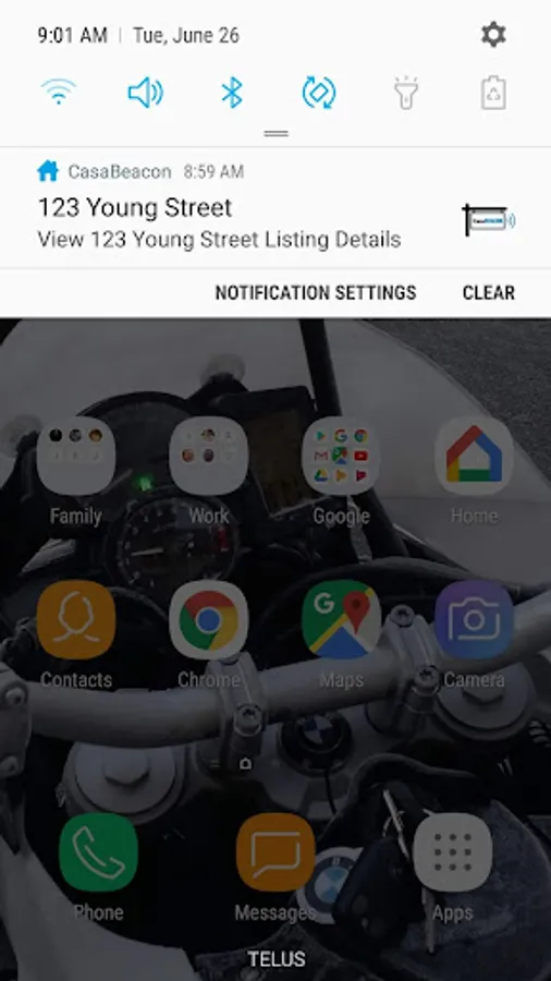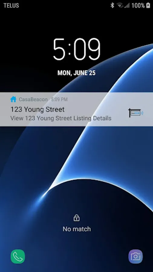 The casaBEACON app runs in the background and notifies users when online information is available for a nearby real estate listing (within 300 feet or 100 meters). Users simply click the notification to view listing details within their Smartphone or Tablet. The notification results from reception of a beacon that is broadcast from casaBEACON compatible Real Estate signs.