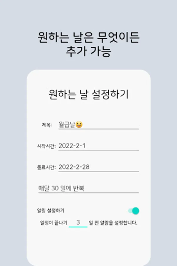 Please specify the date! - If you specify the desired date, you can check the past and remaining days. Recurring schedules are no problem.