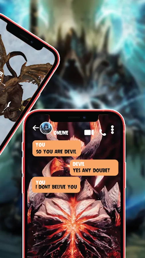 It's a very easy app to entertain yourself or prank your friends and family and see their hilarious reactions. Prank calls through devil video chat and prank call app looks so realistic and they will believe you are really talking with horrible and scary character ""devil"". Create a fake chat through devil video chat, prank call, and devil calling app or devil prank call and fool your friends. Fake Chat lets you create realistic mocks of chat conversations and share them with your friends. Create conversation and have fun with your friends and family. Take screenshots of scary evil ghost, demon devil app chat and share them with friends and make them laugh together.