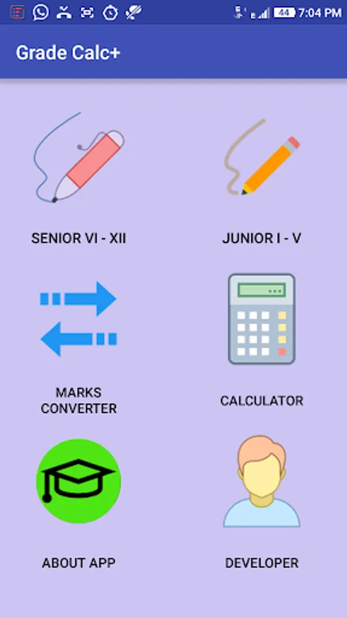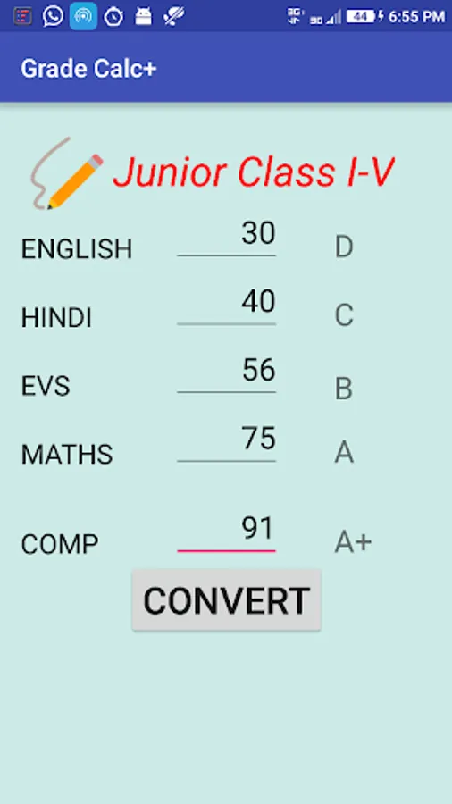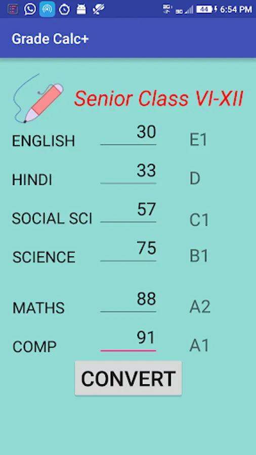 1. Grade Calculator separately for Seniors (class 6th to 12th) and Juniors (class 1st to 5th) following grading system designed by CBSE.