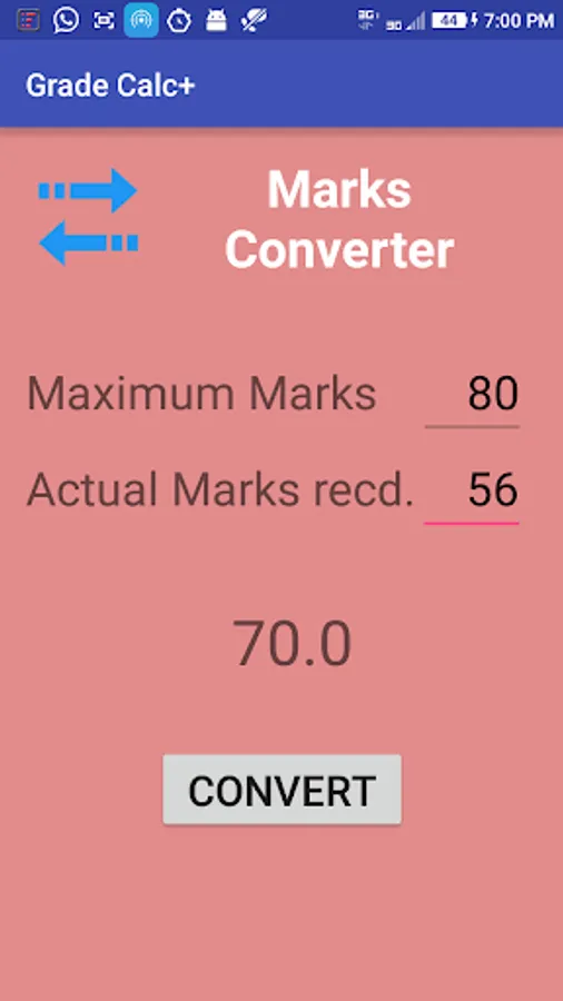 2. Marks converter asks for the maximum marks of a subject (for example 20, 50, 70, 80, 90) and actual marks received by the student and then converts marks to marks out of 100 so that grades can be calculated easily.