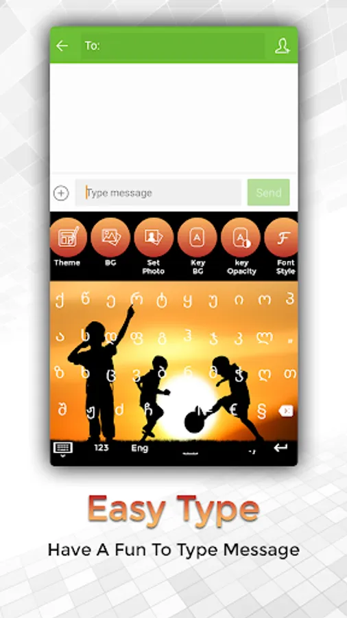Easy Typing Georgian Keyboard, Fonts and Themes provide you to type in Georgian language. You can compose emails,