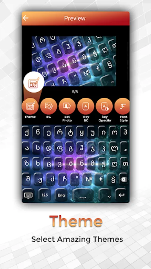 Easy Typing Georgian Keyboard, Fonts and Themes has all latest tools to make keyboard more elegant.