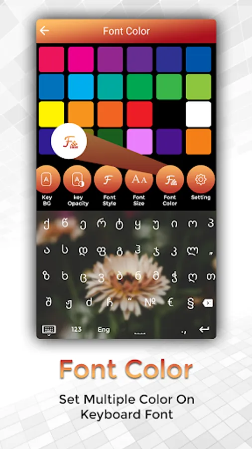 Easy Typing Georgian Keyboard, Fonts and Themes have besutiful font style,colors even you can also increase and decrease font size