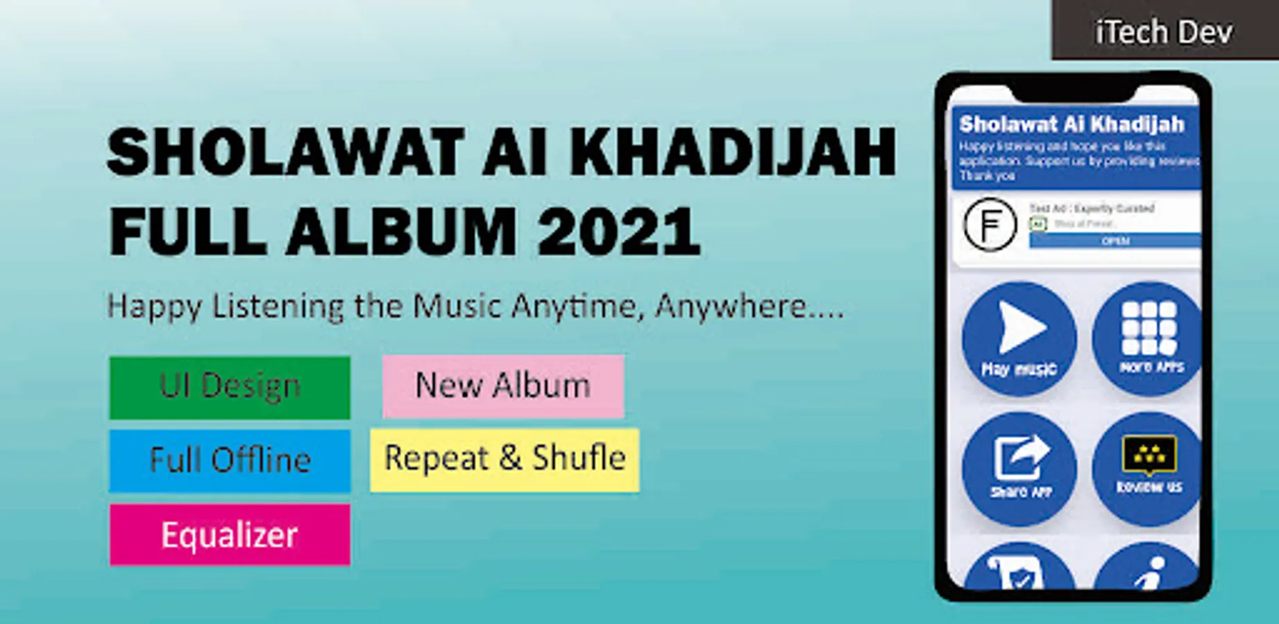 The latest music application from iTech Developer with the title "Ai Khadijah MP3 Offline". This song is taken from the most popular and newest songs of Ai Khadijah. He is the vocalist of one of the musical groups Gambus El Mighwar. With a melodious and distinctive voice, Ai Khodijah mojang from Bandung is slowly starting to get attention from religious music lovers and catapulted the name of the El Mighwar music group in the ranks of Indonesian religious music.