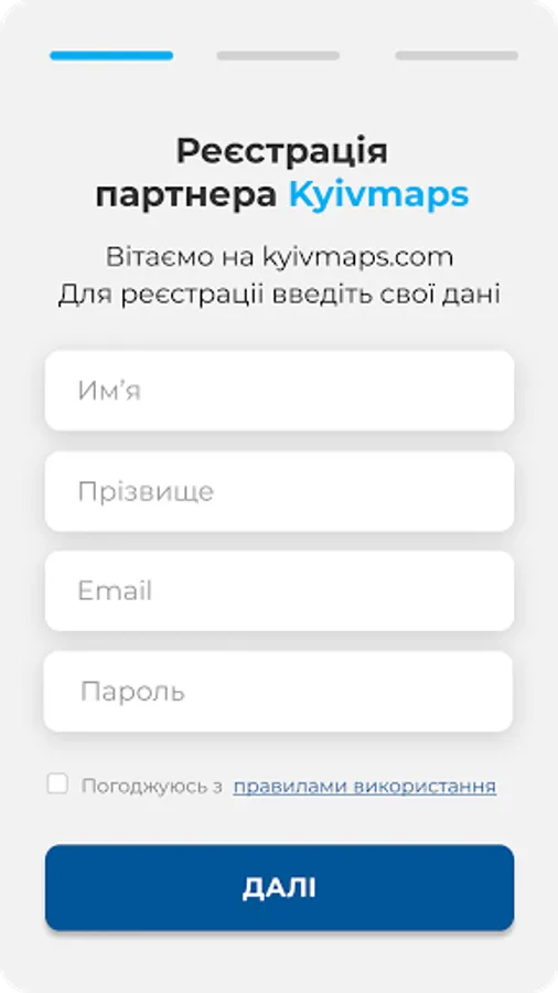 With the Kyivmaps Partner application you can register a partner account and join the kyivmaps community, create your own loyalty system, accept orders for your services using an automated system and much more!