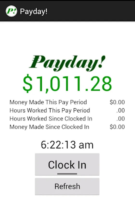 If you're an hourly wage worker, chances are your paycheck varies from week to week. If you'd like to see what your upcoming paycheck should be, use Payday! Simply fill out the settings and clock in and out of the app when you clock in or out of work.