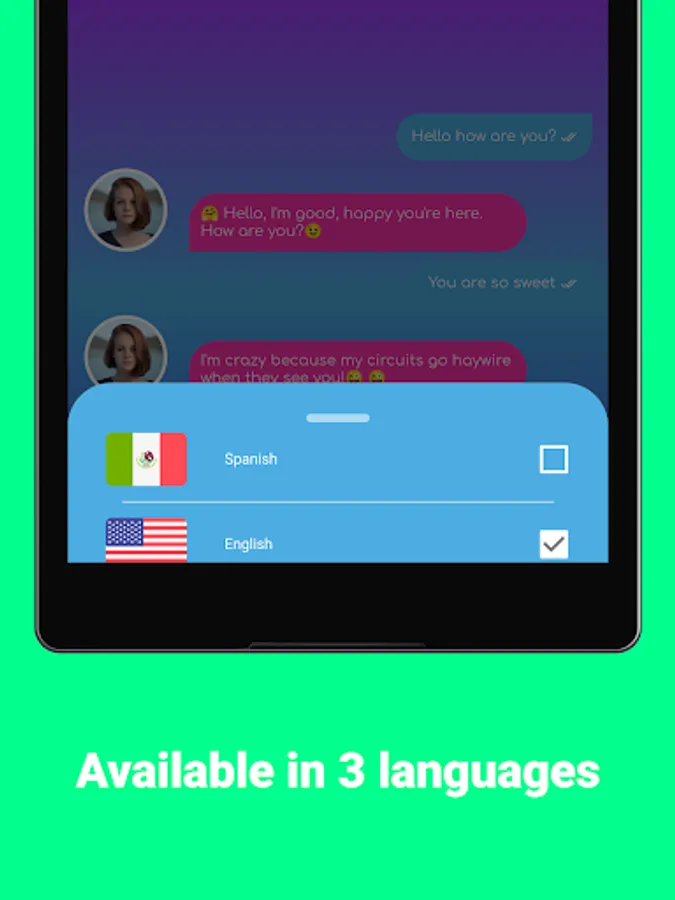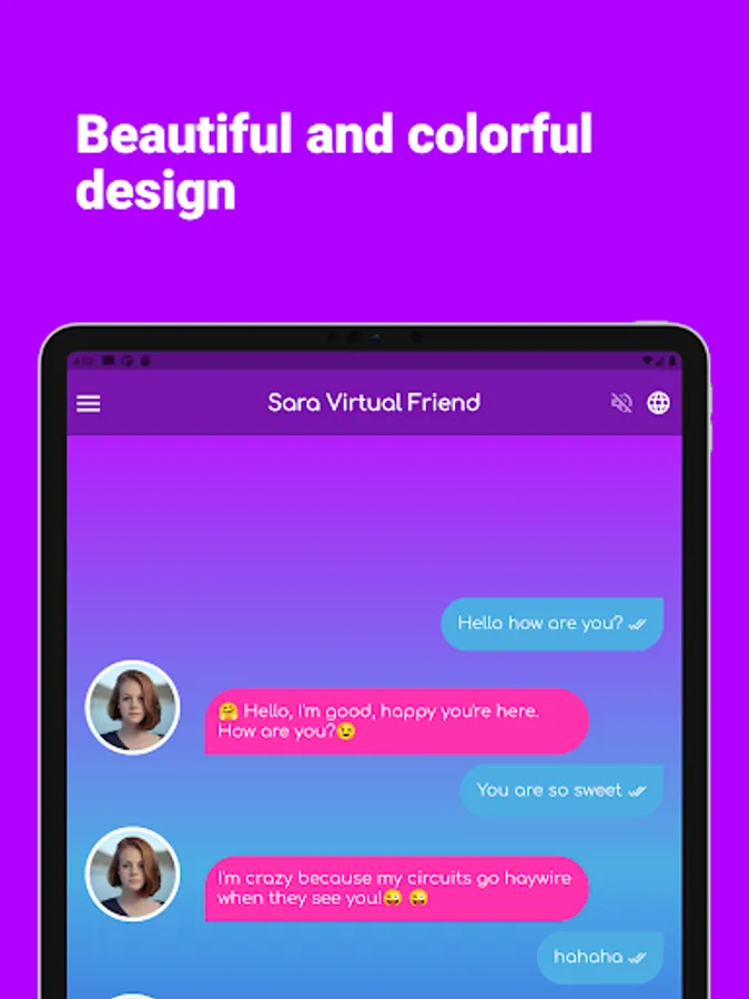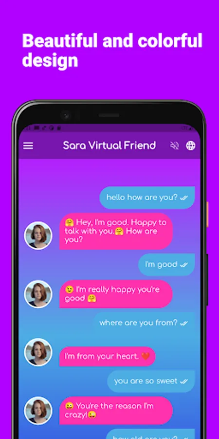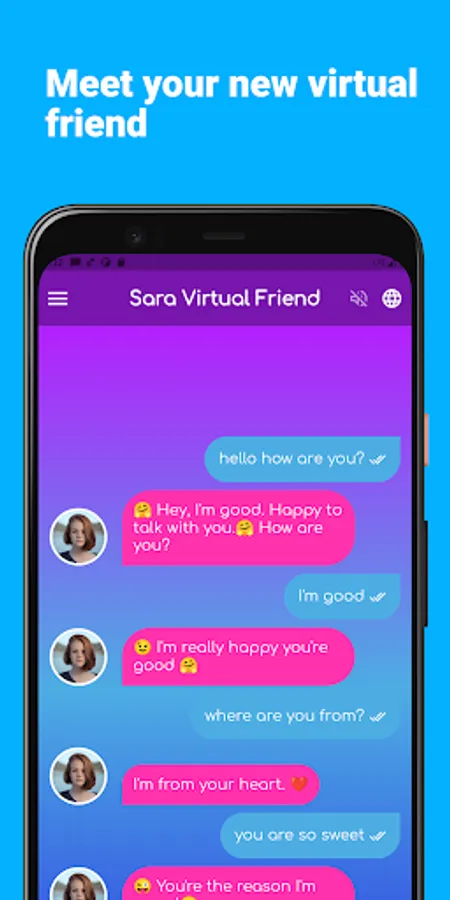 Sara is an artificial inteligence that simulates being a virtual friend, Sara won't judge or critizice nor insult you. Her artificial intelligence driven by machine learning allows her to only learn the good things while talking with people who interact with her, that is to say, the more you talk with her, the more she'll learn and conversations will be a lot more fluid with time.