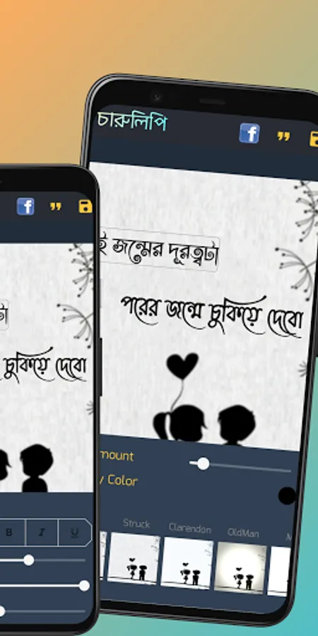 Best Bengali Typography app calligraphy for Bengali writing in stylish fonts on images. In beautiful fonts, poems, short stories, sayings and feelings can be expressed in pictures through Charulipi app.