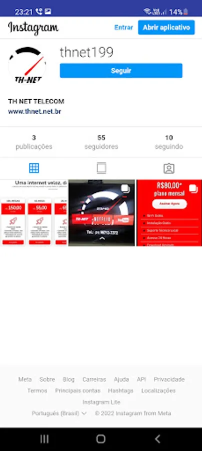 FROM THIS APPLICATION YOU CAN DOWNLOAD YOUR TICKETS TO TEST THE SPEED OF YOUR CONNECTION AND YOU HAVE THE INSTAGRAM OF TH-NET.