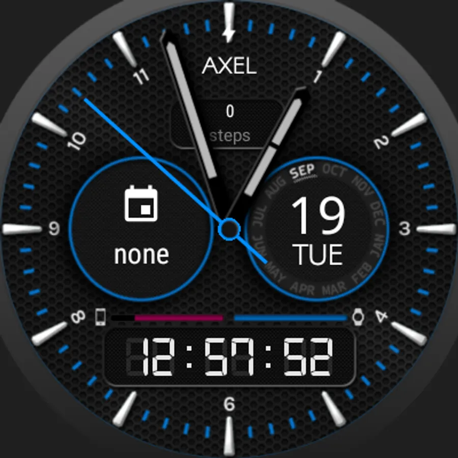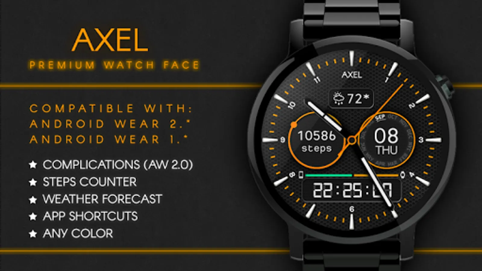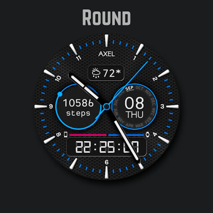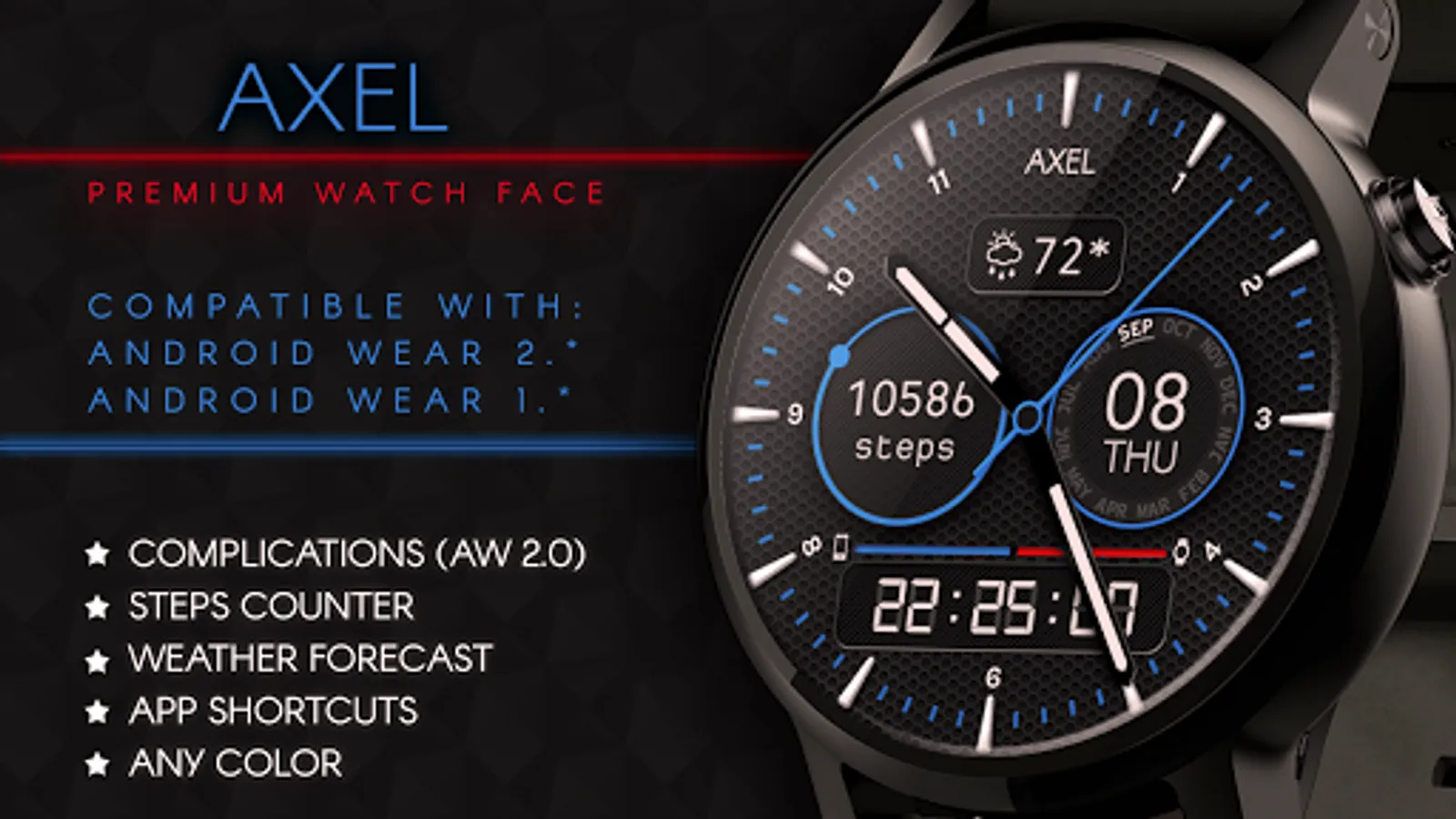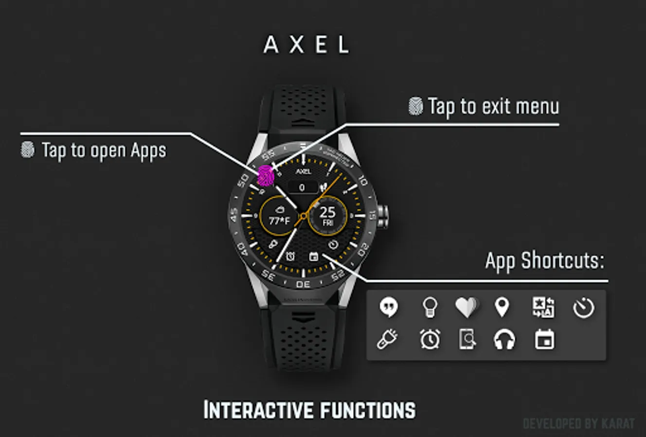 Axel is interactive and modern watch face for Android Wear 1.* and AW 2.* devices with App Shortcuts and Complications