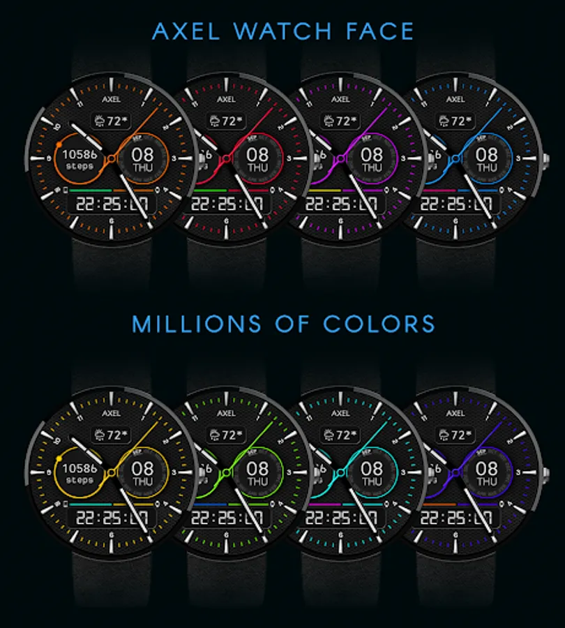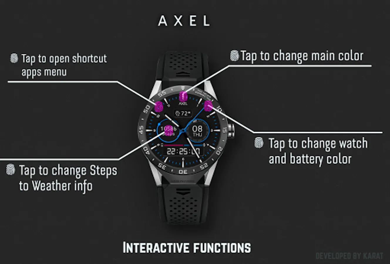 ★ Tap the Axel logo on watch face to change the colors randomly!