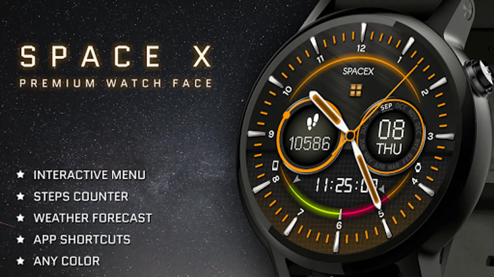 Space X - perfectly works on all Android Wear devices, get the fast and smooth experience with our watch faces.