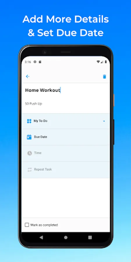 JustDoIt is a simple To-Do List for everyday use with a simple user interface and with offline support. no matter what you do in your life this app will help organize everything and help you get things done.