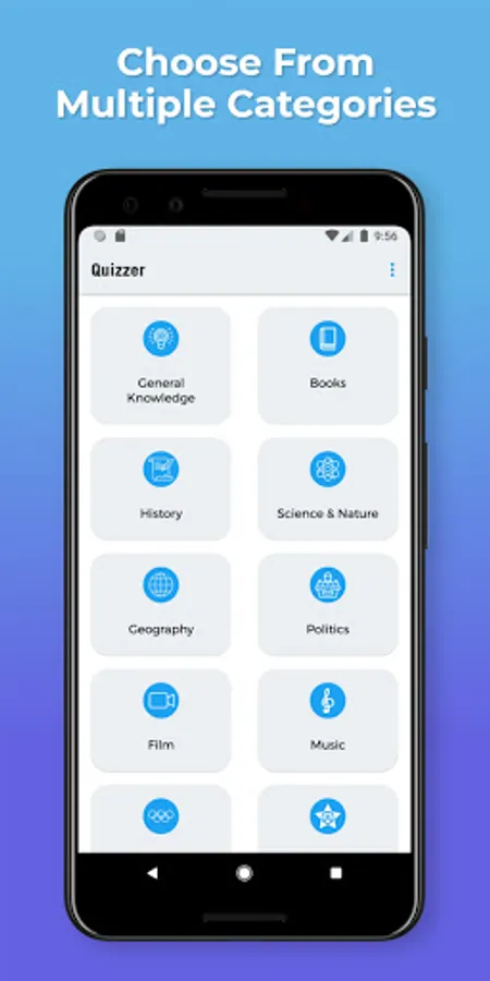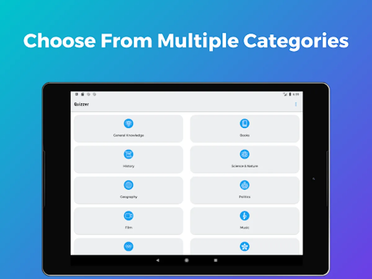 * Chose from over 8+ categories: general knowledge, science, sports, celebrities, animals