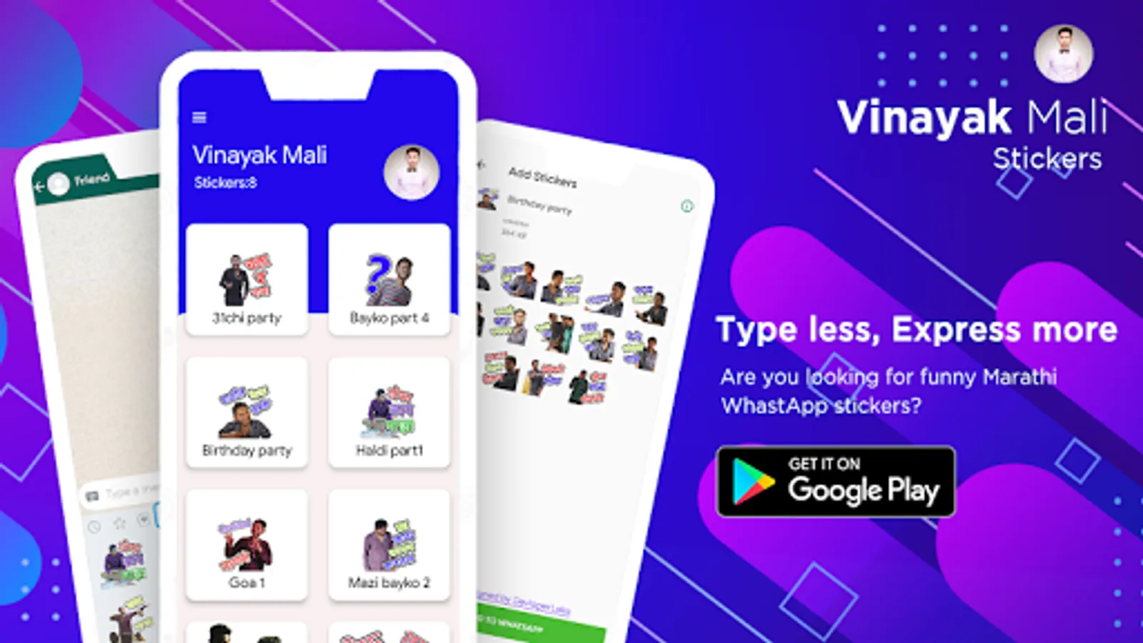 Vinayak Mali Sticker App helps to easily express your emotions, send stickers instead of emoji, keyboard type and make your overall chat looks more fun than the usual text and emoji. Our sticker packs are small and light weight, and you can add them easily to your collection to share & chat with others.