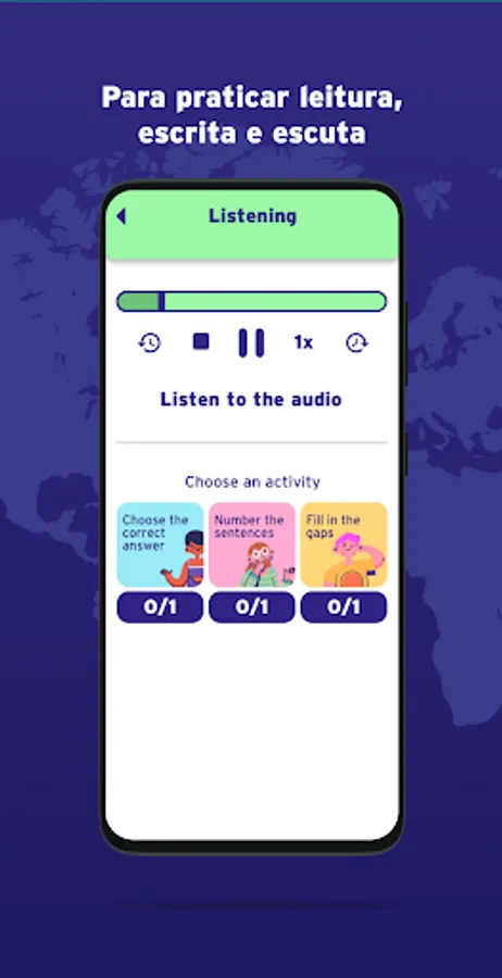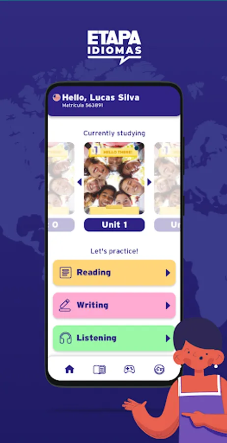 With the Passo Idiomas App, you can review and deepen the contents in a fun and interactive way! Through Reading, Writing, Listening, Speaking activities, games and various multimedia resources, you will transform your learning journey. Be part of this unique experience.