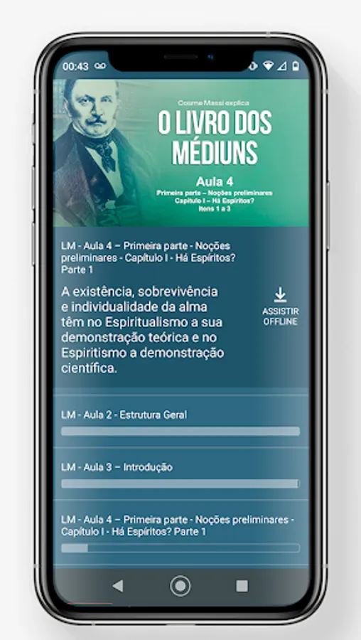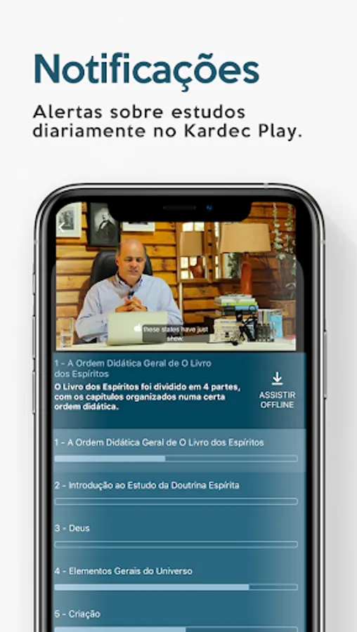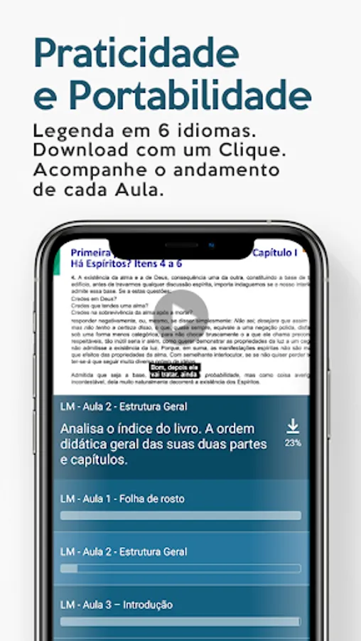 Initially, you will have access to the study by items from The Spirits' Book, Allan Kardec's first and most complete work. We are in the second part of this work and we already have more than 50 seminars. In order to complement your studies of the fundamental works of Kardec, we also provide several titles on Philosophy and Spiritist Philosophy. All in a structured way so that you can easily browse all the content covered.