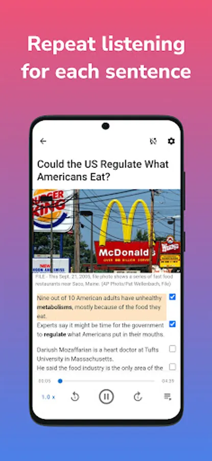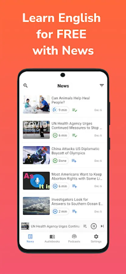 VOA contents contains stories on a variety of interesting topics such as world news, business, science, technology, American history, and English grammar.