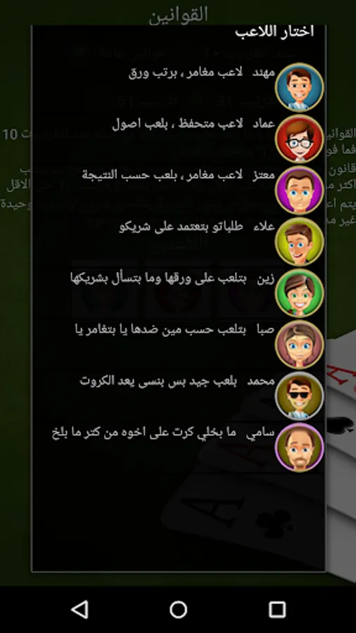 Tarneeb blackjack is known in the Arab countries in general and the Levant especially used for playing cards. Called "rule" in the Arab Gulf states. The objective of the game is to win consecutive Tarneeb groups. The game consists of four players in the partnership, every two in one team. The remaining teams play as they are until the end of the groups and announce the winner.