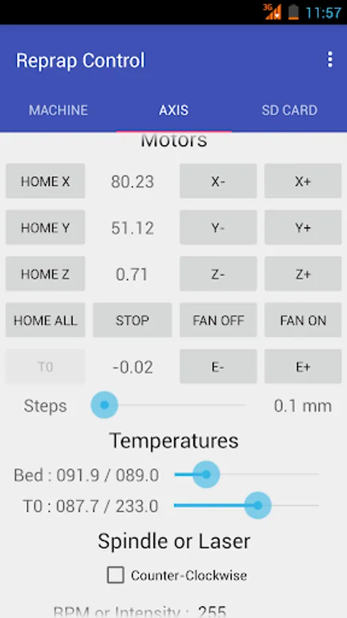 This app is a G-code sender with graphical user interface to manually control your reprap 3D printer machine.